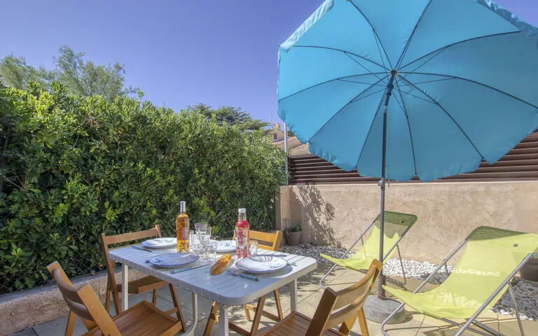 Die Ferienwohnung ist ein vollständig renoviertes Studio mit einer Fläche von 27 m² im ersten Obergeschoss und bietet Platz für maximal 4 Gäste. Das Studio wurde 2023 komplett renoviert und ist mit sorgfältig ausgewählten, komfortablen Möbeln ausgestattet. Die fensterlose Eingangshalle ist mit einem Etagenbett von 70 cm Breite und 190 cm Länge ausgestattet, das Schlafplatz für 2 Gäste bietet. Der Wohn- und Essbereich ist durchdacht gestaltet und verfügt über ein Doppelschlafsofa von 160 cm Breite und 190 cm Länge, das zusätzliche Schlafmöglichkeit bietet. Dieser Bereich hat direkten Zugang zu einer privaten Terrasse von 16 m². Das Studio ist in offener Grundrissform angelegt und umfasst 1 Schlafbereichkonfiguration sowie 1 Duschbad mit WC.