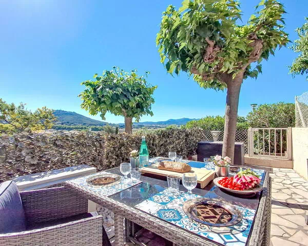 Der Außenbereich von „L'Olympie" bietet einen einladenden Platz zum Entspannen und Sonnenbaden in ruhiger Umgebung. Die erhöhte Lage des Anwesens, die über den charakteristischen Treppenweg mit 15 Stufen erreichbar ist, verleiht dem Außenbereich einen Hauch von Abgeschiedenheit und Charme. Von hier aus können die Gäste die frische Küstenluft und die Schönheit der umgebenden Landschaft genießen.
