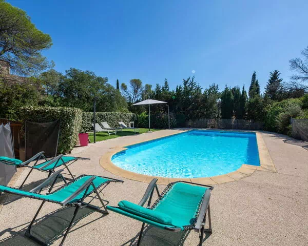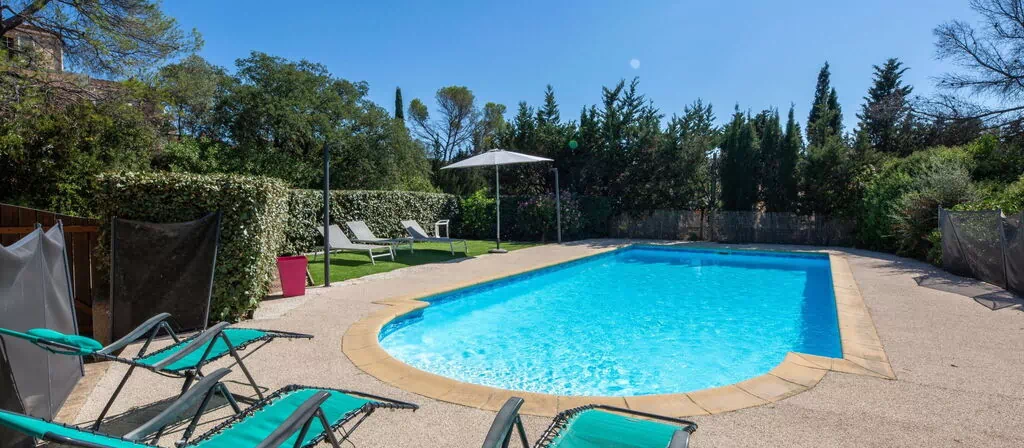 Der Privatgarten umfasst 1.700 m² und ist vollständig eingezäunt; er wird als Naturgarten gepflegt und bietet mit seinen alten Bäumen natürlichen Schatten und Abgeschiedenheit. Der Außenpool misst 11 x 5 Meter bei einer Tiefe von 180 cm und ist vom 15. März bis 15. Oktober verfügbar. Der Pool ist mit einer Salzelectrolyse-Reinigungsanlage ausgestattet. Eine Terrasse vervollständigt den Außenbereich und bietet einen Platz zum Entspannen und Speisen im Freien.