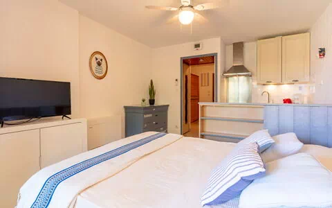 Die Ferienwohnung „Les Regates" liegt im charmanten Küstenort Hyères in Südfrankreich und befindet sich in einem fünfgeschossigen Gebäude nur 100 Meter vom Meer entfernt. Die Unterkunft bietet Gästen eine komfortable und praktische Basis, um eines der beliebtesten Seebäder der Côte d'Azur zu erkunden. Das Anwesen verfügt über einen Hof sowie eine zuverlässige WLAN-Verbindung. Die unmittelbare Umgebung ist hervorragend ausgestattet: Ein Geschäft, ein Lebensmittelladen, ein Restaurant, eine Bar, eine Bäckerei und ein Café befinden sich alle innerhalb von 100 Metern der Ferienwohnung.