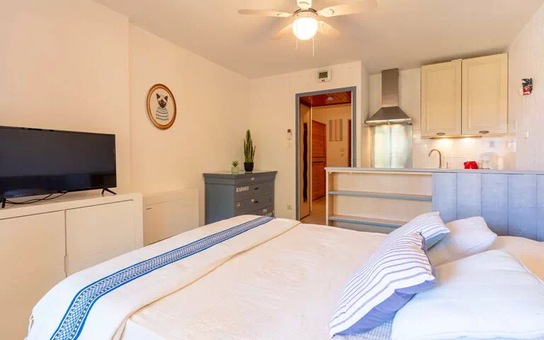 Eine Bushaltestelle befindet sich 50 Meter vom Anwesen entfernt; Fahrradverleih ist 300 Meter entfernt verfügbar. Das Tauchzentrum und die Segelschule liegen beide 150 Meter von der Ferienwohnung entfernt, der Sporthafen ist ebenfalls 150 Meter entfernt. Eine Surfschule befindet sich 500 Meter entfernt; ein Reitstall liegt 1 km vom Anwesen entfernt. Wanderwege beginnen 1,8 km von der Ferienwohnung entfernt und führen in die umgebende Naturlandschaft; das Wandergebiet Espace Nature des vieux Salins ist 5,8 km entfernt erreichbar. Kiddy Parc liegt 2,3 km entfernt, Magic World ist 2 km vom Anwesen entfernt, Olbus Riquier liegt 4,6 km entfernt, Speedkart ist 1,8 km entfernt, die Route du Sel befindet sich 5,1 km von der Ferienwohnung entfernt und der Jardin Zoologique La Londe liegt 15 km entfernt.