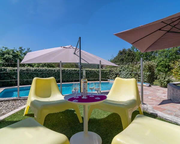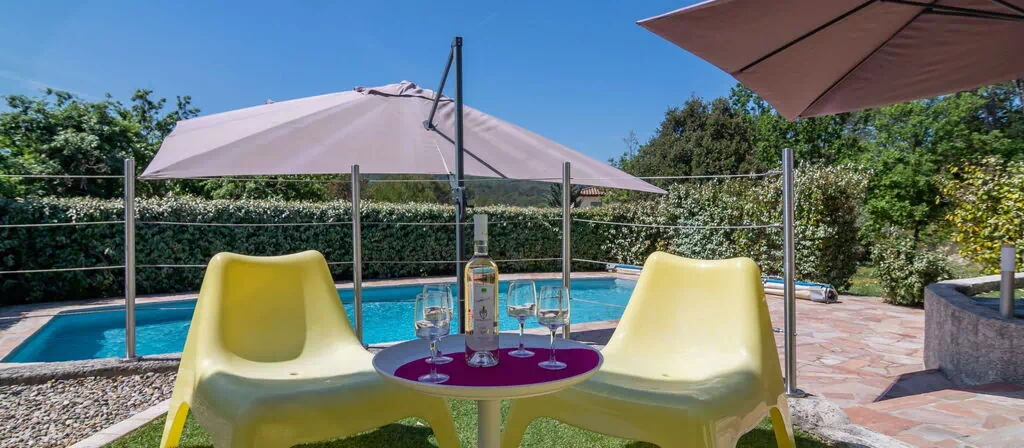 Das Ferienhaus verfügt über einen privaten Swimmingpool mit den Maßen 10 x 5 Meter und einer Tiefe von 120 bis 200 cm, der vom 1. Mai bis 31. Oktober zur Verfügung steht. Ein Poolhaus mit Kühlschrank und Kamin bietet einen funktionalen Raum für Zusammenkünfte am Wasser. Das Grundstück von 5.000 m² behält seinen natürlichen Charakter und bietet ausreichend Platz für Aktivitäten im Freien sowie ruhige Momente in der unberührten Landschaft der Var-Region. Der großzügige Garten vermittelt ein Gefühl von Freiheit und Privatsphäre.