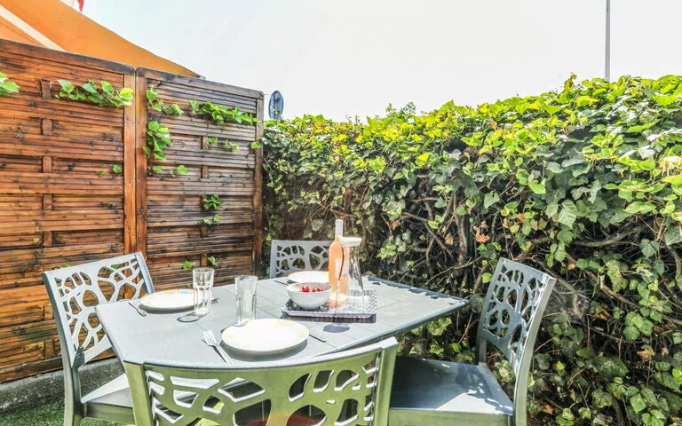 Der Hof der Residenz bietet einen angenehmen Ort zum Entspannen und Erholen. Die nach Westen ausgerichtete Lage ermöglicht es, das warme Nachmittagslicht zu genießen und die sanfte Meeresbrise von den Außenbereichen aus zu erleben. Die unmittelbare Nähe zum Meer schafft eine natürlich einladende Atmosphäre für alle, die das Outdoor-Leben an der Côte d'Azur schätzen.