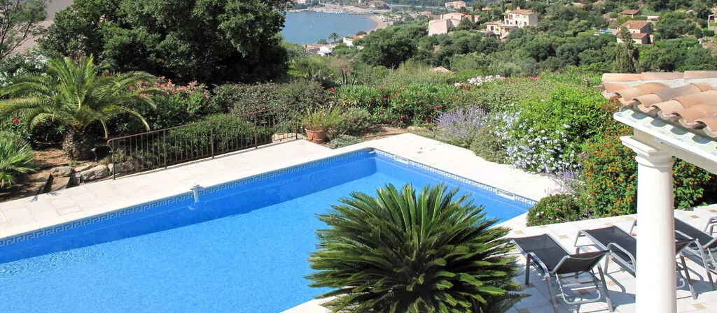 Der private Swimmingpool misst 10 x 5 Meter und hat eine Tiefe zwischen 50 und 190 cm; er ist vom 1. Januar bis 31. Dezember verfügbar und mit einem Alarmsystem ausgestattet. Der gepflegte Terrassengarten erstreckt sich über das vollständig eingezäunte Grundstück von 1.100 m² und bietet einen ruhigen, gepflegten Außenbereich. Eine großzügige Terrasse mit Gartenmöbeln vervollständigt die Außenanlagen und schafft einen idealen Platz für Mahlzeiten im Freien und zum Entspannen.