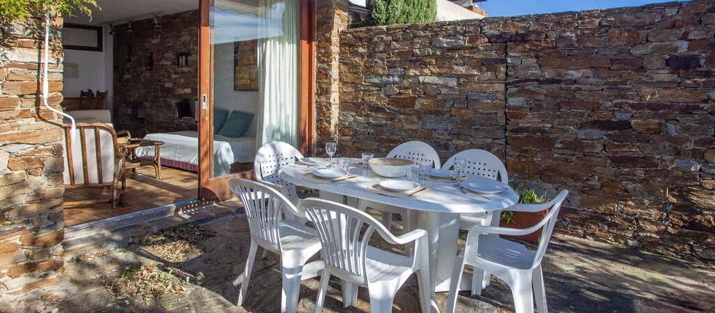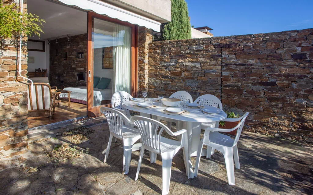 Der Außenbereich des Ferienhauses spiegelt den natürlichen Charme der provenzalischen Hügellandschaft wider. Die Terrassen-Anordnung schafft mehrere Außenräume, die von der erhöhten Position profitieren und ein Gefühl von Privatsphäre sowie Verbundenheit mit der umgebenden Grünfläche vermitteln. Der Hof bietet einen einladenden Bereich, um das warme Mittelmeerklima zu genießen und eignet sich ideal für Außenessen und Entspannung in der frischen Luft. Ein charaktervoller Treppenweg mit 9 Stufen verbindet den Zufahrtsbereich mit dem Hauseingang und wird von der natürlichen Landschaft der Domaine Gaou Bénat gerahmt.