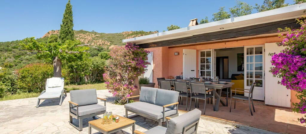 Agay 10 km von St Raphael: Einfamilienhaus "Maison Mime". Sonnige Lage am Hang, in einem Wohnquartier, 1.4 km vom Meer, 1.4 km vom Strand. Zur Alleinbenutzung: Grundstück 500 m2, gepflegter Garten 55 m2 mit Pflanzen und Blumen. Pergola (15 m2), Parkplatz auf dem Grundstück. Einkaufsgeschäft, Restaurant, Bäckerei 900 m, Bushaltestelle 1 km, Bahnstation "Saint-Raphaël Valescure" 12 km, Sandstrand "Agay" 1.6 km. Golfplatz (18 Loch) 9 km. Nahe gelegene Sehenswürdigkeiten: Dramont 3 km, Fréjus 13 km, Cannes 30 km, Saint-Tropez 50 km, Gorges du Verdon 90 km. Bekannte Seen in der Umgebung sind gut erreichbar: Sainte-Croix 90 km. Wandergebiete: Estérel 3 km, Sentier du Littoral 500 m. Bitte beachten: Fahrzeug empfohlen. Jugendgruppen nur auf Anfrage. Der Besitzer akzeptiert keine Jugendgruppen. Die Schlüsselübergabe findet bei der Agentur Interhome in Port Fréjus statt.