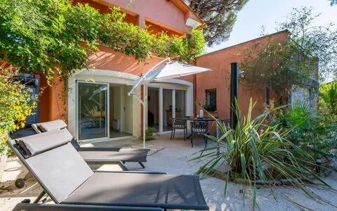 Einfamilienhaus "Terre de Sienne". Im Ortsteil du Val d'Esquiere, ausserhalb des Ortes, 1.6 km vom Zentrum von Les Issambres, ruhige Lage, 800 m vom Meer, 800 m vom Strand, Richtung Südwesten. Zur Mitbenutzung: Grundstück (eingezäunt), Parkplatz. Einkaufsgeschäft 1 km, Supermarkt 700 m, Restaurant 1 km, Bäckerei 1.2 km, Zentrum zu Fuss in 15 Minuten erreichbar, Bushaltestelle "Plage de la Garonnette" 900 m, Bahnstation "Saint-Raphael TGV" 16 km, Sandstrand "La Garonnette" 900 m, Thermalbad "Thalasso Les Issambres" 1.3 km. Sporthafen 800 m, Golfplatz (18 Loch) 11 km, Tennis 3.5 km. Nahe gelegene Sehenswürdigkeiten: Navette/Shuttle Boat St Tropez 20min 1 km, Aqualand waterpark 9 km, Saint-Tropez/Ramatuelle 21 km, Port-Grimaud 16 km, Sainte-Maxime 8 km, Gorges de Verdon 95 km. Wandergebiete: Massif des Maures 15 km, Massif de l'Esterel 20 km. Bitte beachten: Fahrzeug empfohlen. Die Residenz wird durch elektrische Tore geschlossen. Die Schlüsselübergabe findet bei der Agentur Interhome in Sainte-Maxime statt, 7 km. Besitzer wohnt in separatem Hausteil. Flugplatz 70 km vom Haus.