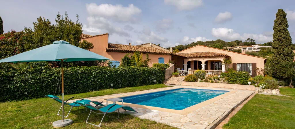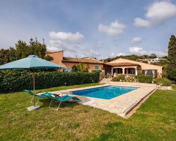 Terrassenhaus "Villa Philipp". Mietobjekt bestehend aus Haupt- und Nebengebäude, im Villenviertel, 2 km vom Meer, 2 km vom Strand, in einer Sackgasse, am Golfplatz, Richtung Süden. Zur Alleinbenutzung: gepflegter terrassierter Garten, 1'500 m2 (eingezäunt), Schwimmbad eckig (8 x 4 m, 100 - 220 cm tief, saisonale Verfügbarkeit: 01.Apr. - 31.Okt.) mit Alarmanlage. Terrasse (30 m2), Gartenmöbel, Grill, Parkplatz (für 3 Autos). Einkaufsgeschäft 3 km, Restaurant 2 km, Bushaltestelle 2 km, Sandstrand "Plage du Vieux Moulin" 2 km. Jacht-Hafen 5 km, Golfplatz (18 Loch) 1.8 km, Tennis 2 km. Nahe gelegene Sehenswürdigkeiten: Ste. Maxime 6 km, St. Tropez 12 km. Objekt geeignet für 6 Erwachsene + 2 Kinder.