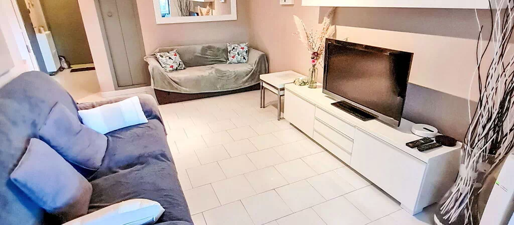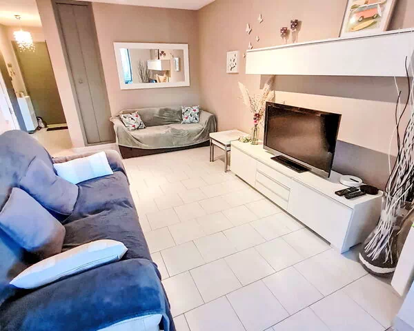 3-Zimmer-Wohnung 50 m2 im 1. Stock. Komfortabel eingerichtet: 1 Zimmer mit 1 Doppelbett (140 cm, Länge 190 cm). Wohn-/Esszimmer mit 1 Doppeldiwanbett (140 cm, Länge 200 cm), TV (Flachbildschirm), Ventilator. Ausgang zur Terrasse. 1 Zimmer mit 1 franz. Bett (140 cm, Länge 200 cm), Ventilator. Kochnische (Backofen, Geschirrspüler, 2 Glaskeramikplatten, Toaster, Mikrowelle, Tiefkühler, elektrische Kaffeemaschine). Dusche, sep. WC. E-Heizung. Terrassenmöbel, Loggia. Zur Verfügung: Waschmaschine. Internet (WLAN, extra). Bitte beachten: Rauchmelder. Inserat einer Privatperson nach Artikel 155, IV, CGI.