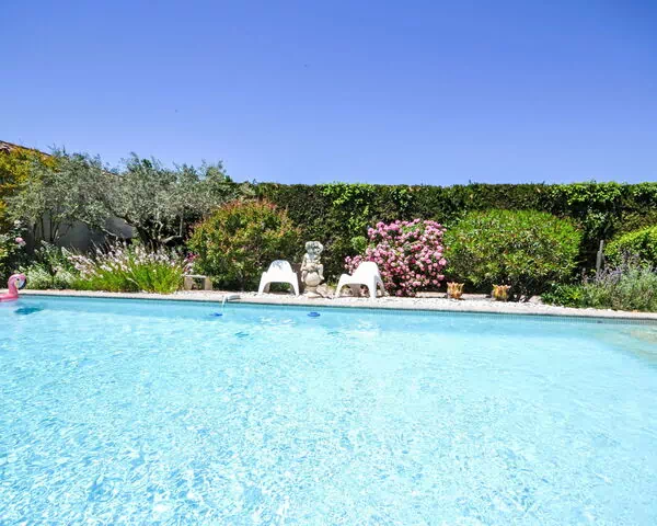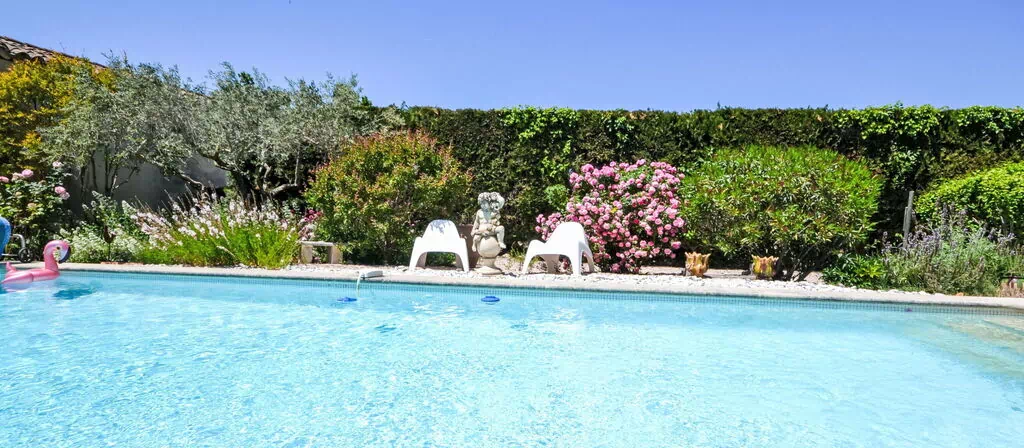 Der Außenbereich von „La Fabrique" ist durchdacht gestaltet, um das provenzalische Klima und die natürliche Umgebung des Anwesens optimal zu nutzen. Ein privater Swimmingpool mit den Maßen 4 x 10 Meter und einer Tiefe von 100 bis 180 cm ist vom 9. Mai bis 30. September verfügbar und mit einer Alarmanlage ausgestattet. Ein Poolhaus mit Kühlschrank und Kochherd befindet sich neben dem Swimmingpool und dient als praktische Erweiterung des Außenbereichs. Eine gut ausgestattete Terrasse mit Gartenmöbeln lädt zum Entspannen ein; ein Grill steht ebenfalls zur Verfügung.