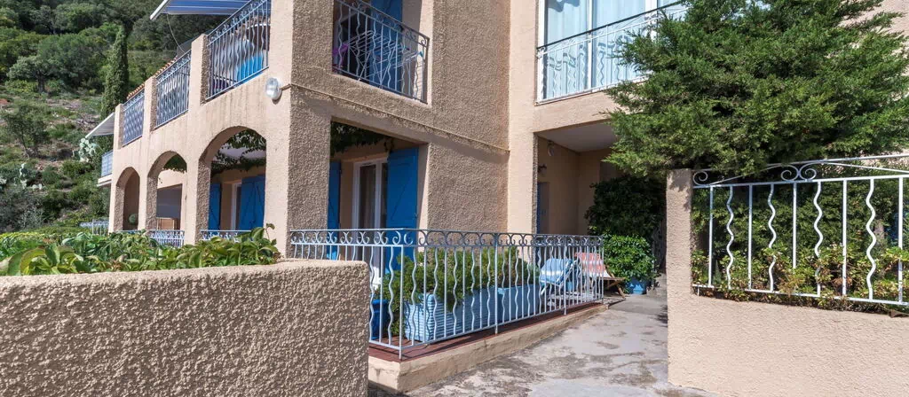 Der Wohnkomplex verfügt über 2 gemeinsame Swimmingpools, die jeweils 15 x 6 Meter messen und eine Tiefe zwischen 80 und 180 cm aufweisen. Die Pools sind vom 1. Juni bis 30. September täglich von 09:00 bis 21:00 Uhr geöffnet. Die Außenbereiche profitieren von der südöstlichen Ausrichtung mit reichlich natürlichem Licht. Ein gemeinsamer Hartplatz steht den Gästen zur Verfügung. Die erhöhte Lage auf dem Hügel am Rande von Cavalaire-sur-Mer schafft ein Gefühl von Offenheit und Ruhe.