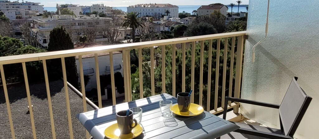 Bycentrum i Cannes ligger cirka 2 km væk; havet og stranden befinder sig blot 1 km herfra. Et busstoppested ligger 100 m fra boligkomplekset. En butik og en restaurant ligger inden for 200 m; et supermarked, et bagersted og en café er alle inden for kort gåafstand. Palais des Festivals ligger 2,2 km væk, mens det historiske kvarter Le Suquet kan nås på cirka 3,5 km. Vieil Antibes befinder sig 10 km fra ejendommen; Marineland-parken ligger 12 km væk, og Nice ligger cirka 30 km herfra.