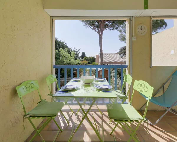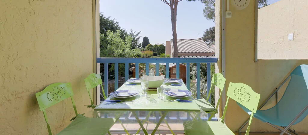 Ferielejligheden ligger inden for området "le Clos des Lavandes," et beboelseskompleks omgivet af træer i Bandol Aoc i Frankrig. Ejendommen er placeret på en høj over byen Bandol, cirka 1,2 km fra bycentrum, i en stille vej, der sikrer privathed og ro. Området er præget af en fredelig beboelseskvartal med naturlige omgivelser.