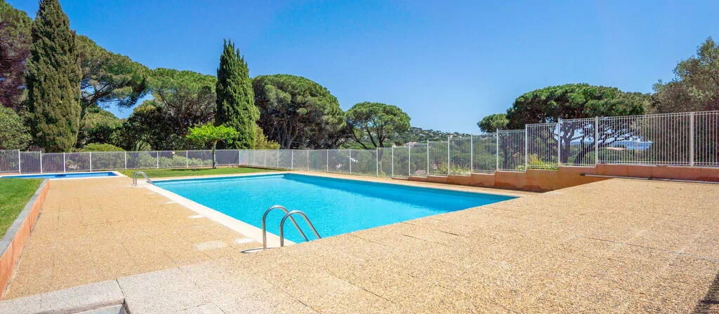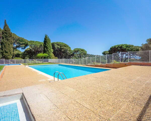 Ferielejligheden ligger inden for det prestigefyldte resort "Domaine des Restanques" i Sainte-Maxime, Frankrig, og udgør en del af en velindrettet ejendom med 60 lejligheder. Boligen er beliggende på en blid skråning med en smukt anlagt terrasse-have med etablerede træer, som skaber en rolig og grøn ramme for opholdet. Gæsterne har fælles adgang til en stor svømmepøl samt en dedikeret børnepøl, og sportsentusiaster kan benytte tennisbanen og bordtennisfaciliteterne på stedet. Hele komplekset er sikret med elektriske porte.