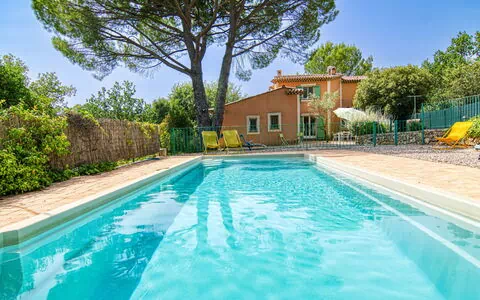Smuk enfamiliehus "Gombaud", omgivet af græsmarker og marker. 7 km fra søen. Til alene benyttelse: uberørt grund 2'500 m2, have i forskellige niveauer med træer, pool indhegnet (9 x 4 m, 120 cm dyb, Sæsonbestemt tilgængelighed: 01.Jan. - 31.Dec.) med alarmanlæg. Udendørs brus, petanque, pergola (50 m2), terrasse. Til afbenyttelse: cykler (2), børnecykler (1). Trappe (11 trin) til huset. Parkeringsplads (for 3 biler) på grunden. Supermarked 5 km, restaurant 3 km, busstoppested 3 km, banegård "Les Arcs Draguignan" 32 km, badesø "Sainte Croix" 41 km, havet de pêche Carcès 7 km. Golfbane (18 hul) 23 km. Nærliggende attraktioner: Chute du Grand Baou 10 km, Grottes de Villecroze, La cascade de Sillans, Cotignac, Vallon Sourn. Kendte søer nås nemt: Carcès 7 km, Saint Croix 41 m.