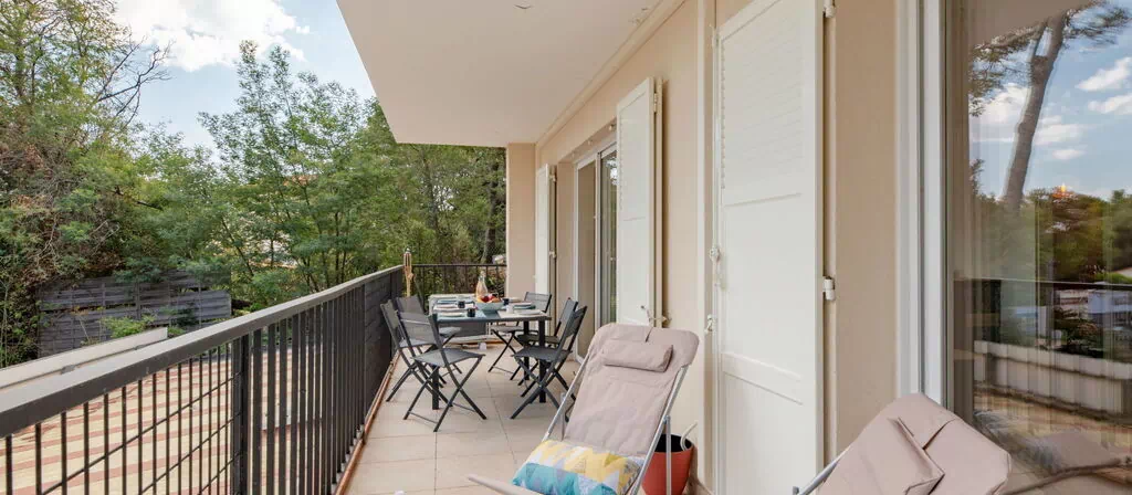 Ferielejligheden er en 2-etagers bygning beliggende inden for feriesteds-området St Aygulf. Centrum af feriesteder ligger cirka 10 minutters gang fra ejendommen. Parkeringsplads på stedet er tilgængelig, dog er antallet af pladser begrænset. Adgang til stranden kræver, at en vej krydses.