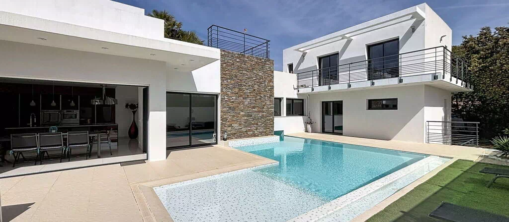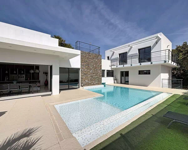 L'Oustaloun er et elegant to-etagers feriehus beliggende i Fréjus på den franske Riviera inden for en bevogtet boligkompleks. Huset blev opført i 2015 og ligger blot 150 meter fra kompleksets centrum, hvilket sikrer en ideel balance mellem nærhed til faciliteter og fred og ro. Ejendommen er fuldt indhegnet og spænder over 600 kvadratmeter, hvilket giver rigeligt plads til afslapning og udendørs aktiviteter. En varmtvandspøl med særegen kantet form udgør et centralt element på ejendommen.