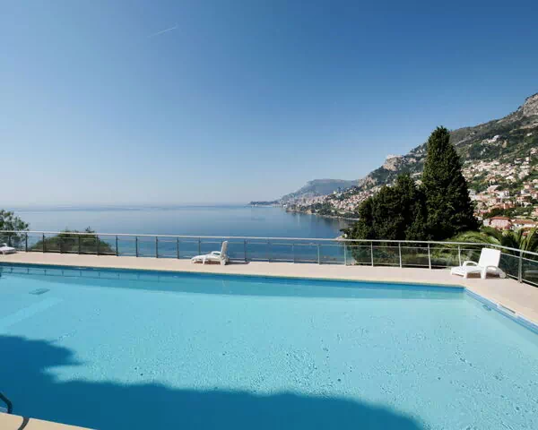 Denne villa ligger i det prestigefyldte boligkompleks "Le Parc Massolin" i Roquebrune-Cap-Martin i Frankrig, blot 2 km fra den charmerende by Menton og 600 m fra havet. Ejendommen er placeret i en fremragende 6-etagers bygning over Roquebrune og giver gæsterne adgang til en smukt vedligeholdt fælles park på 2 hektar, fuldt omgivet af hegn for privatlivets og sikkerheds skyld. Beboerne nyder godt af fremragende fælles faciliteter, herunder en stor opvarmet svømmepøl på 18 x 6 meter, som er tilgængelig fra 1. april til 30. oktober hvert år. Ejendommen er udstyret med elevator og centralvarme.