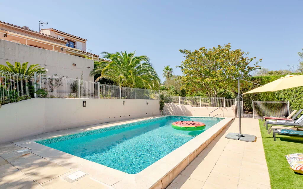Enfamiliehus "Le Beauregard". I bydelen La Petite Afrique, uden for byen, 2 km fra bymidten af St Aygulf, i en bydel, 300 m fra havet, 500 m fra stranden. Til alene benyttelse: grund 1'850 m2 (indhegnet), velplejet have (indhegnet), pool kantet, med varme, indhegnet (4 x 10 m, 160 - 180 cm dyb, Sæsonbestemt tilgængelighed: 01.Apr. - 31.Okt.) med havvand. Petanque, parkeringsplads (for 4 biler). Indkøbsforretning 2 km, fødevarebutik 600 m, restaurant 1 km, bar 1 km, bageri 1 km, 15 minut promenad til center, busstoppested "les Mouettes" 350 m, banegård "Fréjus" 8 km, sandstrand "La Gaillarde" 600 m, park "Areca" 3 km, dykkercenter 3 km, badebugt 300 m. Lystbådhavn 4 km, golfbane (18 hul) 12 km, sejladsskole 8 km, tennis 3 km, sportcentrum 3 km, vandrestier fra huset 2 km. Nærliggende attraktioner: Aqualand, Lunapark 7 km, Frejus 9 km, Saint-Raphael 10 km, Ste Maxime 13 km, Saint-Tropez 27 km, Cannes 45 km. Kendte skiområder nås nemt: Auron, Isola 2000 150 km. Kendte søer nås nemt: Lac de St Cassien 45 km, Lac du Du Verdon 90 km. Vandrestier Petites Maures 2 km, Estérel 20 km, Sentier du Litoral 1 km. Bemærk venligst: bil anbefales. Unge grupper kun på forespørgsel. Residence med elektriske porte.