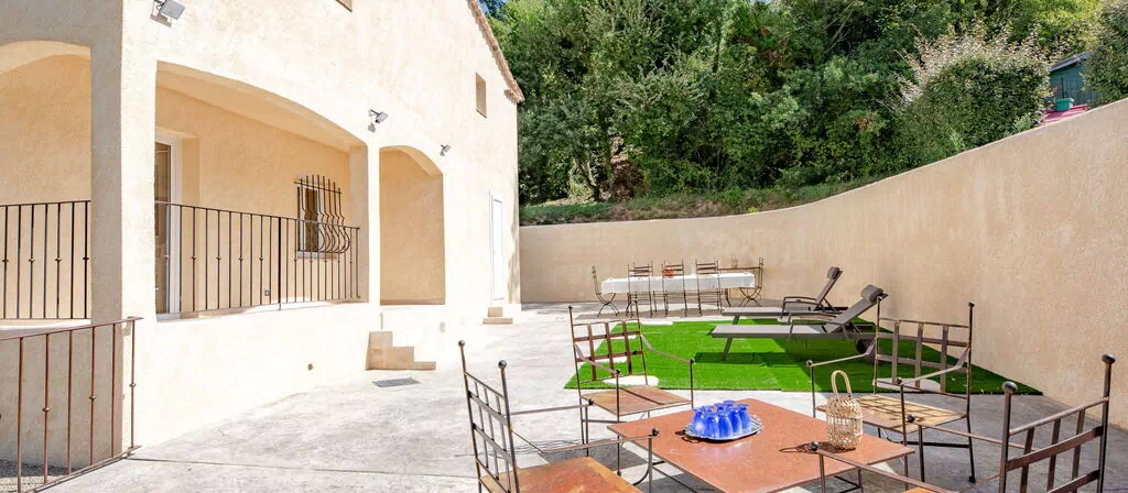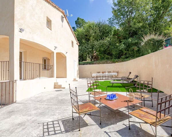 Den private have udgør et roligt område til afslapning og nydelse af den provençalske sol. Den fælles terrashave på 3.000 m² er omhyggeligt anlagt med forskellige planter og træer samt en åben eng, som skaber et rummeligt og indbydende udendørsområde. Husets højt beliggende position på en skråning sikrer rigeligt dagslys og åbenhed. Vandrestier begynder 50 m fra huset og giver direkte adgang til det omgivende landskab.