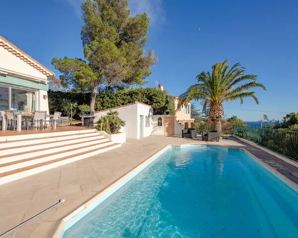 Enfamiliehus "Les Chèvrefeuilles". I byen, 1.8 km fra bymidten af Saint Aygulf, 2 km fra havet, 2 km fra stranden. Til alene benyttelse: grund 1'160 m2 (indhegnet), pool (9 x 4 m, Sæsonbestemt tilgængelighed: 01.Maj. - 03.Okt.) med udvendige jalousier/ skodder. Udendørs brus, terrasse (100 m2), grill, parkeringsplads. Indkøbsforretning 2 km, indkøbscenter 7 km, 25 minut promenad til center, busstoppested "Saint-Aygulf La Poste" 1.5 km, banegård "Fréjus" 7 km, sandstrand "Saint Aygulf" 2.5 km, park "Areca" 2 km, dykkercenter 7 km, varmtvandsbad "Thalasso de Port Fréjus" 7 km. Lystbådhavn 2.5 km, golfbane (18 hul) 8 km, sejladsskole 8 km, ridehal 3 km, sportcentrum 2 km. Nærliggende attraktioner: Aqualand, Luna Park 7 km, Fréjus 8 km, Saint Raphael 10 km, Saint Tropez 30 km, Cannes 47 km, Nice 73 km. Kendte skiområder nås nemt: Auron, Isola 2000 150 km. Kendte søer nås nemt: Lac de St Cassien 45 km, Lac du Du Verdon 90 km. Vandrestier Estérel 18 km, Sentier du Littoral 2 km. Nøgleoverrækkelsen finder sted på kontoret Interhome Saint Aygulf, 2 km borte.