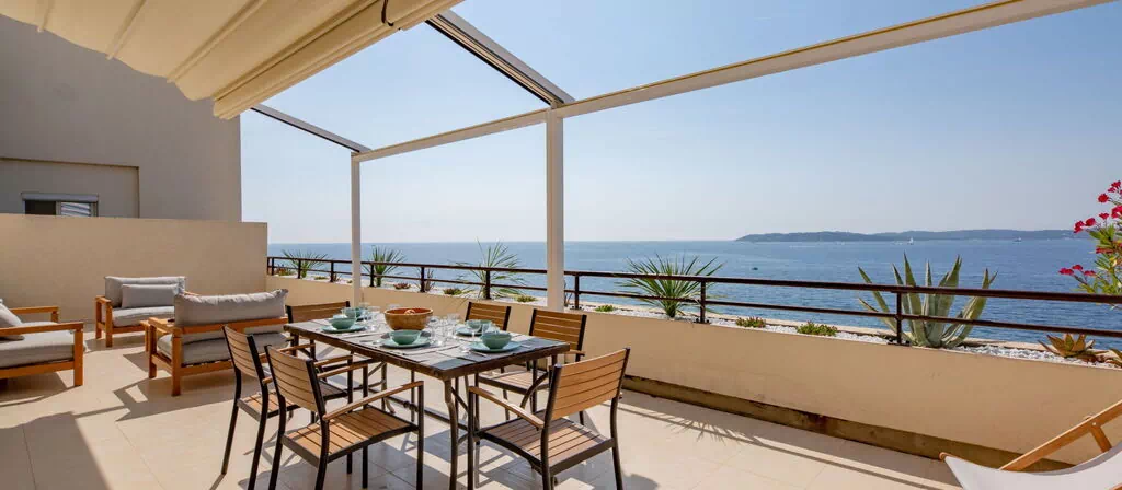3-værelse-lejlighed i to etager 114 m2 i 5. etage, syd vendt. Stilfuld indrettet: stor stue/spisestue med TV (fladskærms TV). Udgang til terrasse. 1 værelse, retning syd med 1 fransk seng (1 x 180 cm, længde 200 cm). Udgang til terrasse. 1 værelse, retning nord med 1 fransk seng (1 x 160 cm, længde 200 cm). Åbent køkken (ovn, opvaskemaskine, 4 keramiske kogeplader, Brødrister, kedel, mikroovn, fryser, elektrisk kaffemaskine). Brus, særskilt toilet. Klimaanlæg, varmluftsopvarming. Overetage: 1 værelse, uden vindue med 1 fransk seng (1 x 160 cm, længde 200 cm), brus/bidet/WC. Stor terrasse 50 m2, syd vendt. Havemøbler. Panoramaudsigt over havet. Til benyttelse: vaskemaskine, strygejern hårtørrer. Internet (trådløs LAN [WLAN], ekstra). Parkeringsplads i 750 m. Bemærk venligst: ikke-ryger lejlighed, parkeringsplads kun til små biler. Maksimum 1 husdyr/hund tilladt. Brandalarm. Offer by a private individual according to Art. 155, IV of CGI. 83115005138HT