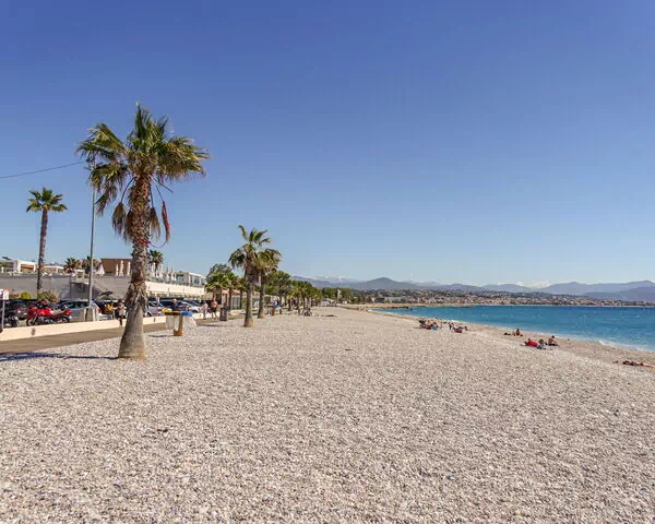 Flerfamiliehus "Le Garden Beach", på 2 etager. I bydelen Villeneuve Plage, 50 m fra havet, 50 m fra stranden, retning syd. Til medbenyttelse: pool (Sæsonbestemt tilgængelighed: 15.Maj. - 15.Sep.). Indkøbsforretning 1 km, fødevarebutik 1 km, supermarked 1 km, restaurant 1 km, café 1 km, busstoppested 500 m, stenstrand "plage de la batterie" 50 m. Lystbådhavn 1 km, marina 1 km. Nærliggende attraktioner: Antibes Les Remparts 7.5 km, biot verrerie 7.3 km, Cannes croisette 20 km, centre nautique, location de jet ski 270 m.