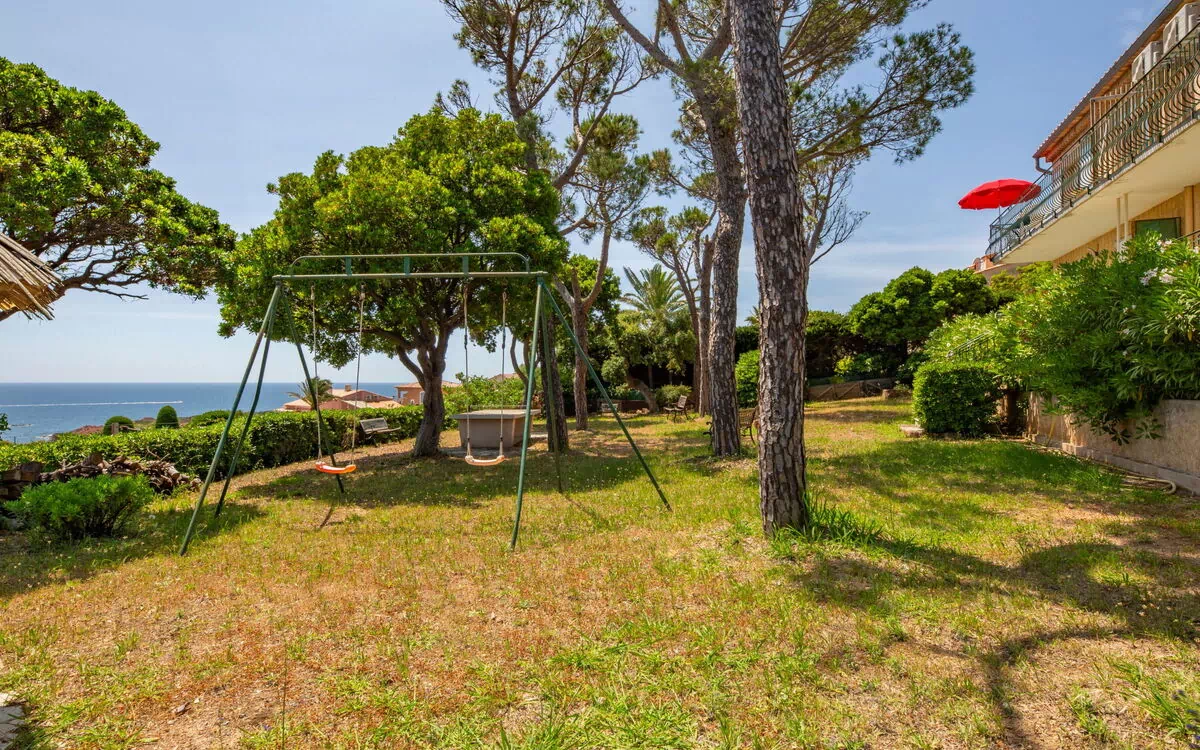Villa "Boudi.ou", på 2 etager. 4 lejligheder i ejendommen. 400 m fra havet, 900 m fra stranden, retning syd øst. Til medbenyttelse: uberørt grund 1'000 m2 (indhegnet). Til alene benyttelse: petanque, parkeringsplads. Fødevarebutik 500 m, supermarked 5 km, restaurant, busstoppested 500 m, banegård 300 m, sandstrand 900 m. Golfbane (18 hul) 12 km. Nærliggende attraktioner: Cannes 26 km, Nice 60 km, Saint Tropez 55 km. Vandrestier Esterel Pic Roux 500 m. Bemærk venligst: velegnet for familier. Toglinie 40 m fra huset.