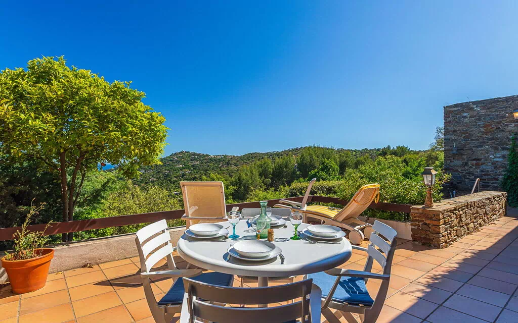 Domaine Gaou Bénat 6 km fra Le Lavandou: Rækkehus "Village des Fourches". I bydelen Gaout Bénat, i byen de Bormes Les Mimosas, rolig beliggenhed på en bakke, i en bydel, 2.5 km fra havet, 2.5 km fra stranden, retning syd øst. Til alene benyttelse: uberørt grund. Tilkørsel til 100 m fra til huset. Trappe (43 trin) til huset. Indkøbsforretning 4 km, fødevarebutik 4 km, busstoppested "Lavandou Gare Routière" 7 km, sandstrand "Gaou Bénat" 2.5 km, stenstrand "Gaout Bénat" 2.5 km. Tennis 2.5 km. Nærliggende attraktioner: Saint Tropez 43 km, Magic World 29 km, Parc Olbius Riquier 26 km, Le Jardin des Méditerranées 19 km. Vandrestier Sentiers du Littoral. Bemærk venligst: bil anbefales. Nøgleoverrækkelsen finder sted på kontoret Interhome Le Lavandou, 6 km borte.