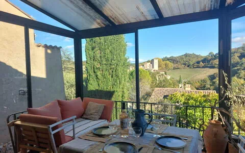 Rækkehus. 1.5 km fra bymidten af Esparron de Verdon, 13 km fra centrum af Gréoux les Bains, 25 km fra bymidten af Manosque, rolig beliggenhed, 600 m fra søen. Til alene benyttelse: have i forskellige niveauer, 100 m2 (ikke hegnet ind), offentlige parkeringspladser 50 m på vejen. Fødevarebutik 100 m, supermarked 21 km, restaurant, bar 250 m, bageri 150 m, café 250 m, busstoppested 160 m, banegård "Manosque" 26 km, havet Esparron de Verdon 600 m. Golfbane (18 hul) 34 km, ridehal 15 km. Nærliggende attraktioner: Thermes de Grèoux les Bains 13 km, Moustiers SAinte Marie 33 km, Plateau de Valensole 30 km, Parc de Loisirs Canyon Parc Gréoux 15 km, Gorges du Verdon. Kendte søer nås nemt: Lac Esparron de Verdon 600 m, Lac Quinson 12 km, Lac de Sainte Croix 24 km. Ejeren accepterer ikke nogen ungdomsgrupper.