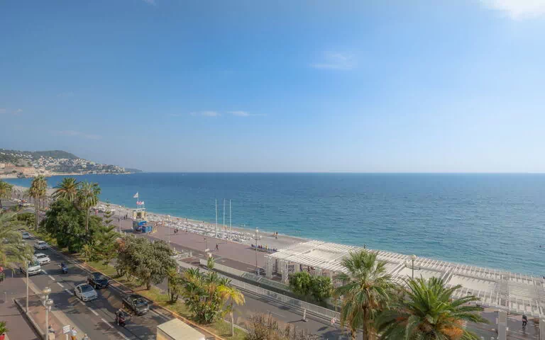 Ejendommen ligger blot 50 meter fra stranden "Ruhl Plage", adskilt kun af en vej. Den ikoniske Promenade des Anglais ligger praktisk talt på dørtrinnet, hvilket inviterer til lange spadsereturer langs en af verdens mest berømte kystpromenader. Området nyder godt af det generøse middelhavsklimaet, som karakteriserer denne del af Franske Riviera.
