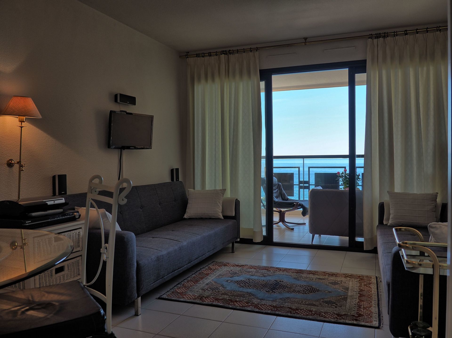 Appartement magnifique avec vue de rêve un parking situé pil-poil en dessous de celui ci mais gros bémols au niveau de l'espace cuisine ou le four est en mauvais état,les casseroles ne sont pas faites pour la plaque vitrocéramique et le nombre de couverts est insuffisant et il n'y a pas d'égouttoir à vaisselle.Le rideau qui donne sur la terrasse n'est pas assez large ce qui empêche la personne couchée dans le salon de dormir correctement.Par contre la personne de l'agence est très sérieuse et nous ne doutons pas d'elle pour faire changer rapidement ces petits détails ce qui pourrait nous inciter à reprendre cette location.
