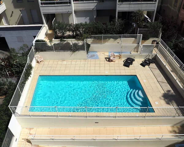 Wonderful 2 bedroom apartment for 6 persons with pool and close to the beach in Cannes La Bocca. This apartment is located on the fourth and top floor of a recently build residence and has a big sunny terrace of 130 m2. The apartment has new furniture inside and outside and the kitchen is well-equipped. It offers aircondition, wifi, washingmachine, garage, shared swimmingpool and the residence is secured and has a lift.