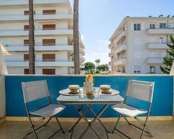 El apartamento tiene una superficie de 21 m² distribuida en una sola planta, ubicada en la segunda planta, y aloja un máximo de 2 huéspedes. Dispone de 1 dormitorio y 1 baño. La zona de estar y comedor integra un sofá cama doble de 140 cm de ancho y 190 cm de largo, así como un televisor de pantalla plana. Desde esta área se accede directamente a un balcón privado de 6 m² amueblado con mobiliario de terraza y con vistas parciales al mar y al puerto. La cocina americana está equipada con 4 fogones, lavavajillas y congelador. El baño dispone de ducha, bidé e inodoro.