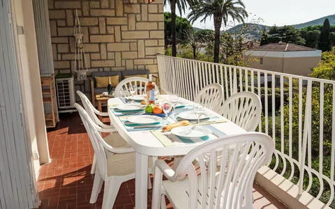 La residencia "Les Palmiers" se encuentra en el corazón de Saint-Cyr-sur-Mer, Francia, distribuida en 2 plantas dentro de una zona de resort soleada, a 500 m del centro y a 300 m del mar. El acceso está controlado mediante un portón eléctrico que garantiza privacidad y seguridad. La residencia cuenta con conexión Wi-Fi disponible durante toda la estancia y aparcamiento en el lugar. A 2 km se encuentran instalaciones de tenis; en las cercanías hay también una zona compartida de boccia.