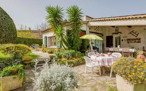 Los amplios terrenos exteriores de "La Palombière" constituyen una de las características más distintivas de la propiedad. El jardín bien cuidado abarca 3.500 m2 y está completamente cerrado por una valla de seguridad, creando un entorno sereno y privado para el disfrute de los huéspedes.