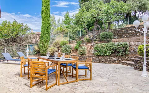 A 800 m del centro de Pierrefeu du Var, a 18 km del centro de Hyeres, a 20 km del centro de La Londe des Maures, en un barrio residencial. Privado: jardín en diferentes niveles, 2'000 m2 (vallado), Piscina elevada (3 x 3 m, 140 cm de profundidad, Disponible por temporada: 01.Ene. - 31.Dic.). Aparcamiento (para 2 coches) en el mismo terreno. Supermercado 1.3 km, restaurante, bar 600 m, panadería 1.3 km, café 600 m, parada autobús 750 m, estación de tren "Cuers-Pierrefeu" 8 km, playa de arena "L'Almanarre" 24 km. Campo de golf (18 hoyos) 24 km, centro ecuestre 10 km. Atracciones en los alrededores: Presqu'Ile de Giens, Iles de Porquerolles, Port Cros, Ile des Embiez. El propietario no acepta grupos de adolescentes/jóvenes. Una parte de la casa está cerrada e inocupada.