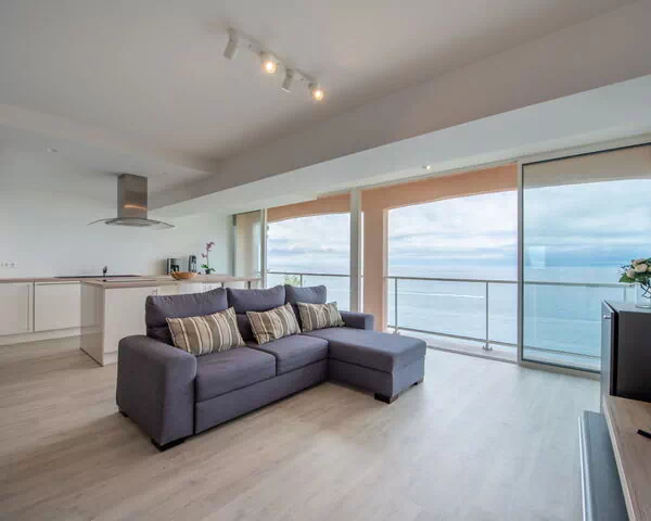 Cet appartement de 72 mètres carrés est situé au rez-de-chaussée et accueille jusqu'à 4 personnes réparties dans 2 chambres et 1 salle de bains. Le séjour et la salle à manger forment un espace ouvert meublé de pièces modernes et confortables, équipé d'un téléviseur à écran plat et de volets électriques. La première chambre dispose d'un lit double composé de 2 matelas simples de 90 cm de largeur et 190 cm de longueur, ainsi que d'un ventilateur. La deuxième chambre est aménagée avec 2 lits simples de 90 cm de largeur et 190 cm de longueur chacun, également équipés d'un ventilateur. La salle de bains comprend une douche, un WC séparé et un double lavabo. La cuisine, en open-plan avec le séjour, dispose d'un four, de 3 plaques à induction, d'un micro-ondes, d'un grille-pain, d'une bouilloire, d'un congélateur et d'une cafetière électrique. L'appartement offre une vue panoramique sur la mer.
