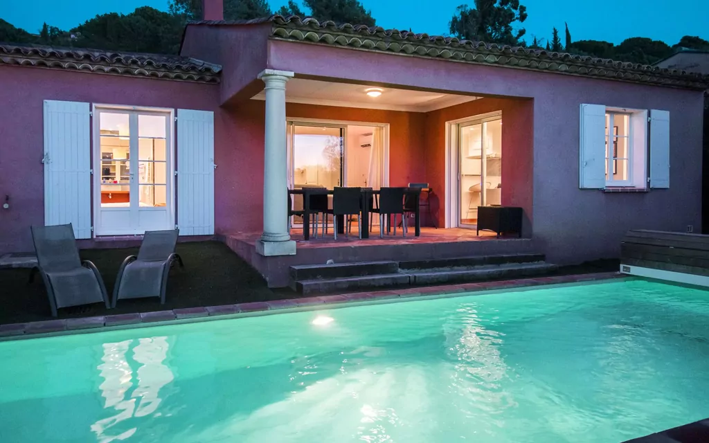 Beau complexe de vacances accueillant "Domaine de l'Eilen", année de construction 2009. 22 maisons dans la résidence. À 2.5 km du centre de Cavalaire, à 18 km du centre de Saint Tropez, situation surélevée sur un versant, à 1 km de la mer, à 1 km de la plage. En commun: ping-pong, terrain de pétanque. A usage privé: jardin 200 m2 (clôturé) avec plantes et arbres, piscine (8 x 3 m, disponibilité saisonnière: 15.Avr. - 15.Oct.). Infrastructures de la résidence: réception, Connexion WIFI. Service boulangerie. Place de parking près de la maison sur le terrain. Magasins 2.5 km, arrêt de bus "Arret de bus - Halte routière" 2.6 km. Veuillez noter: La photo ne montre qu’un exemple de location de vacances. Les locations peuvent également se différencier par leur superficie, la disposition des pièces et leur équipement.