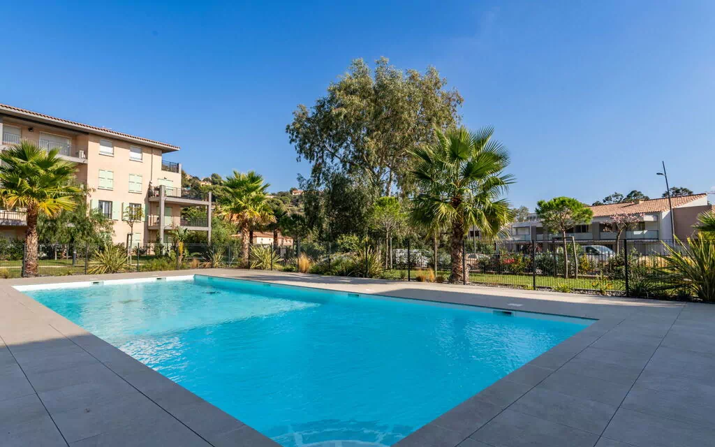 Le jardin partagé offre un cadre tranquille pour la détente. La piscine, de forme angulaire et clôturée, mesure 5 x 15 mètres avec une profondeur comprise entre 85 et 150 centimètres ; elle est accessible du 15 mai au 30 septembre. La piscine est équipée d'un escalier intérieur facilitant l'accès à l'eau.