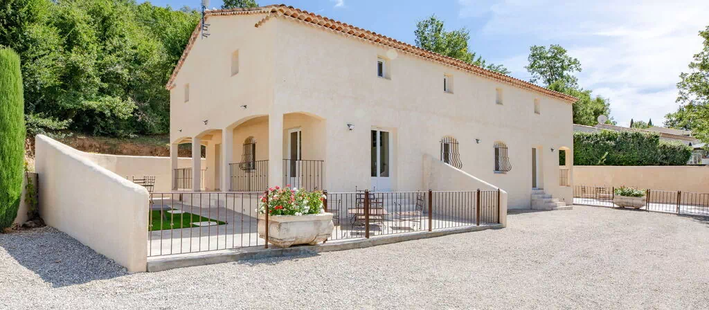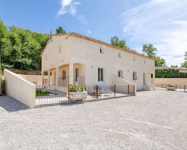Les espaces extérieurs de « Marges » constituent un véritable atout de la propriété. Le jardin privé offre un cadre beau et paisible pour se relaxer, lire ou profiter du soleil provençal. Un magnifique jardin en terrasse de 3 000 m² est mis à disposition en usage partagé, aménagé avec soin et orné d'une riche variété de plantes et d'arbres, s'ouvrant sur une prairie naturelle. Bien que le jardin partagé ne soit pas clôturé, son étendue généreuse et sa position surélevée sur le versant créent une sensation d'ouverture et de connexion avec la campagne environnante. L'implantation de la propriété en terrasse fait de la vie en plein air une composante centrale de l'expérience.