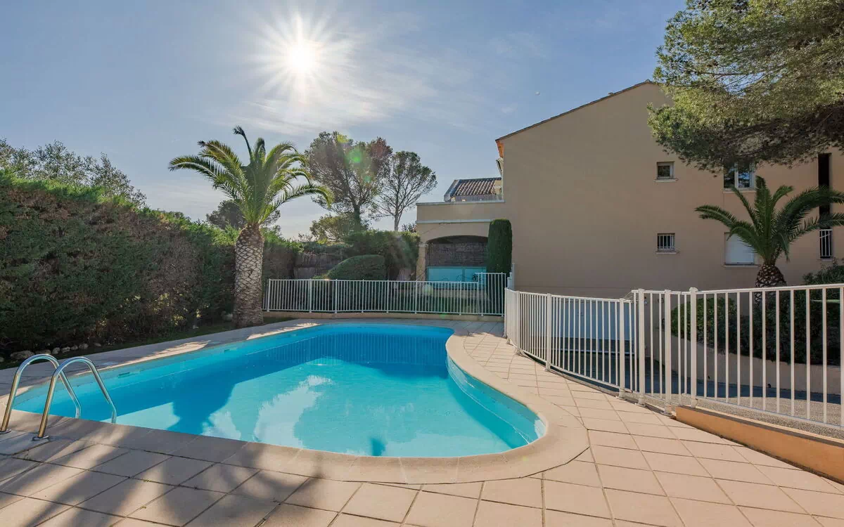 Boulouris-St Raphael: Petite résidence "Les Calanques de boulouris". Au centre de Boulouris, à 3 km du centre de Saint Raphael, dans un quartier résidentiel, à, de la mer, à 300 m de la plage, dans la verdure. En commun: piscine en forme d’haricot (5 x 10 m, profondeur 60 - 160 cm, disponibilité saisonnière: 15.Mai. - 30.Sep.). Place de parking (nombre de places limité). Magasins, magasin d'alimentation 800 m, supermarché 2 km, restaurant, boulangerie 800 m, arrêt de bus 300 m, gare ferroviaire 3 km, plage de sable "la peguière" 300 m. Port plaisance 800 m, terrain de golf (18 trous) 9 km. Attractions à proximité: Cannes 40 km, Saint-Tropez 40 km, Nice 70 km, Gorges du Verdon 90 km. Les lacs connus sont facilement accessibles: Sainte-Croix 90 km. Région de randonnées: Estérel 5 km. Résidence avec portail électrique. La remise des clés a lieu à l’agence INTERHOME de Port Fréjus.
