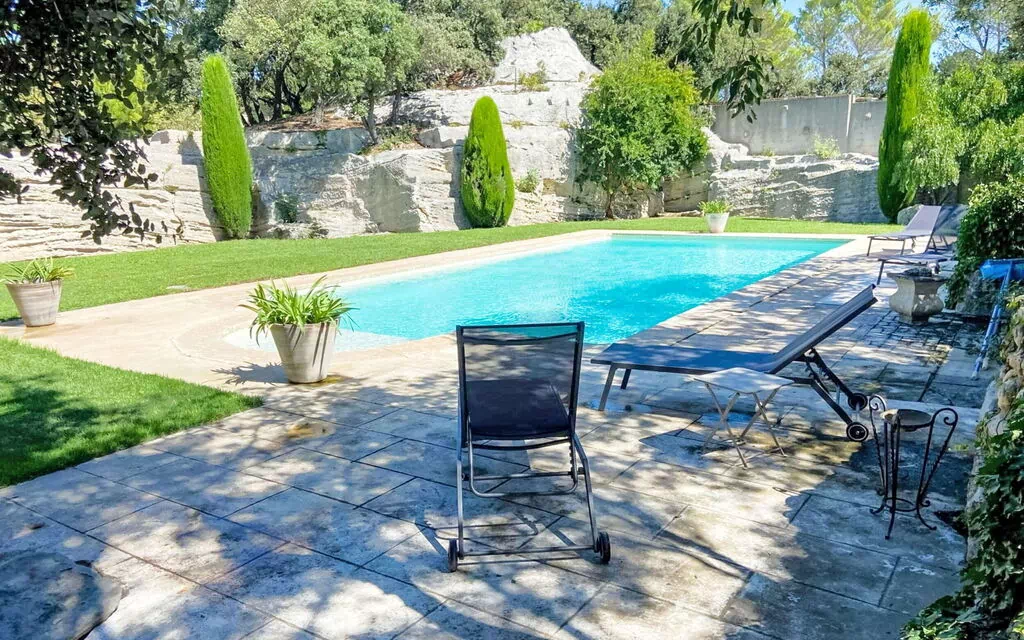Belle maison individuelle "Mas du Castelet", environnée par les champs. En bordure de la localité, à 1.5 km du centre de Fontvieille, à 47 km de la mer, orientée sud-ouest. A usage privé: grand jardin sur plusieurs niveaux 3'000 m2 (pas clôturé) pelouse et arbres, piscine rectangulaire (6 x 12 m, disponibilité saisonnière: 01.Jan. - 31.Dec.) avec alarme de sécurité. Terrasse (30 m2), meubles de jardin, entretien de la piscine par le propriétaire/jardinier. Accès en voiture par un chemin de 50 m de long (chemin non goudronné). Place de parking (pour 3 voitures) sur le terrain. Supermarché 2.6 km, restaurant 250 m, boulangerie 2.9 km, centre à 35 minutes à pieds, arrêt de bus "Saint Victor" 1.8 km. Terrain de golf (18 trous) 11 km, tennis 2.3 km, centre équestre 1 km, chemins de randonnées pédestres depuis la maison 4 km. Jeux pour enfants 6.1 km, Possibilités de pêche 19 km. Attractions à proximité: Abbaye de Montmajour 2.1 km, Acqueduc Romain de Barbegal 3.6 km, Château de Montauban 3.4 km, Arènes d'Arles 6.9 km. Région de randonnées: Parc Régional de Camargue 17 km, Parc Régional des Alpilles 12 km, Parc Régional du Luberon 40 km. Veuillez noter: voiture recommandée. Le propriétaire n'accepte pas les groupes de jeunes. Déchargement et chargement des bagages à la location de vacances. Située sur un site Historique de Fontvieille proche de l'Abbaye de Montmajour, le Mas du castelet est le point de départ idéal pour découvrir Arles, la Camargue et les Alpilles.