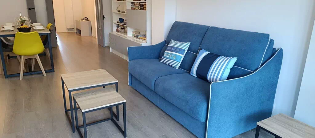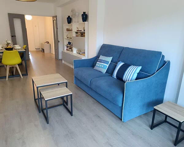 Apt 3 pièces 85 m2 au 4ème étage. Rénové en 2023: séjour/salle à manger avec TV et écran plat. Sortie sur la loggia. 1 chambre avec 1 grand-lit (1 x 140 cm, longueur 200 cm), TV, écran plat, chauffage électrique et ventilateur. 1 chambre avec 1 lit (160 cm, longueur 200 cm), TV, écran plat, chauffage électrique et ventilateur. Grande cuisine (four, lave-vaisselle, 4 plaques à induction, grille-pain, bouilloire électrique, micro-ondes, congélateur, cafetière électrique, Capsules pour machine à café (Senseo) (NON INCLUSES)). Douche, WC séparé. Chauffage électrique. Mobilier de balcon, loggia. Vue sur la ville. A disposition: lave-linge. Internet (Connexion WIFI, gratuit). Garage, largeur 245 cm. Veuillez noter: logement non-fumeur. TV seulement FR. Détecteur de fumée. Annonce d'un particulier (art 155, IV du CGI).