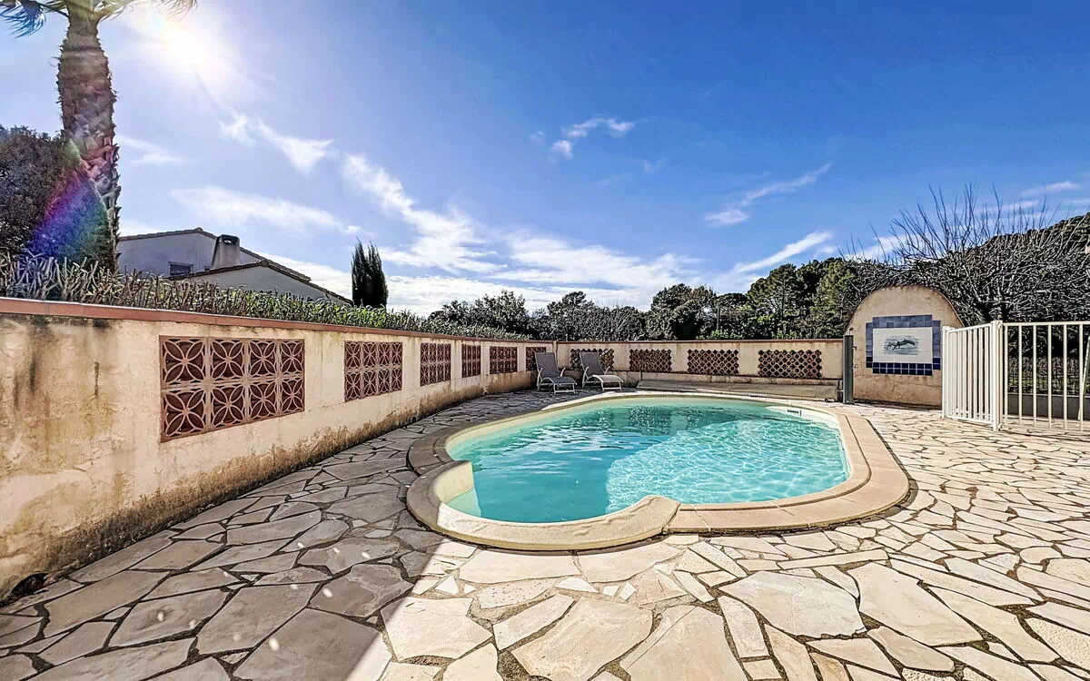 Maison individuelle "Le Racine", année de construction 1970. Dans le quartier de la Bouverie, à 500 m du centre, à 20 km de la mer, dans une impasse. A usage privé: terrain (clôturé), piscine ronde (10 x 4 m, profondeur 130 - 190 cm, disponibilité saisonnière: 01.Mai. - 31.Oct.). Douche extérieure, barbecue, place de parking. Magasin d'alimentation, boulangerie, café 500 m, arrêt de bus "Coeur de la Bouverrie" 500 m, gare ferroviaire "Fréjus" 20 km, plage de sable "Plage de Saint Aygulf" 19 km plage de graviers "Calanques des Louvans" 18 km, centre de plongée 27 km, centre thermal "Thalasso de Port Fréjus" 21 km. Port plaisance 15 km, terrain de golf (18 trous) 13 km, ecole de voile 22 km, centre équestre 2 km. Attractions à proximité: Aqualand, Lunapark 17 km, Fréjus 20 km, St Raphael 22 km, Saint Tropez 45 km. Les domaines skiables de renommée sont facilement accessibles: Auron, Isola 2000 160 km. Les lacs connus sont facilement accessibles: Lac de St Cassien 50 km, Lac du Du Verdon 90 km. Région de randonnées: Estérel 35 km.