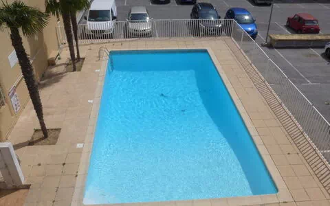 Apt 2 pièces 35 m2 au 3ème étage. Aménagement confortable: séjour/salle à manger avec 1 divan-lit double (130 cm, longueur 190 cm), TV et air-conditionné. Sortie sur la terrasse. 1 chambre avec 1 grand-lit (140 cm, longueur 190 cm). Coin cuisine (four, 4 plaques vitrocéramiques, grille-pain, bouilloire électrique, micro-ondes, cafetière électrique, Capsules pour machine à café (nespresso) (NON INCLUSES)). Douche, WC séparé. Chauffage électrique. Terrasse 7 m2, couverte, situation ouest. Meubles de terrasse. Vue sur la piscine. A disposition: lave-linge, fer à repasser, sèche-cheveux. Internet (Connexion WIFI, gratuit). Place de parking No 124 (1 Voiture). Veuillez noter: maximum 1 animal/ chien de petite taille autorisé. TV seulement FR. Détecteur de fumée.