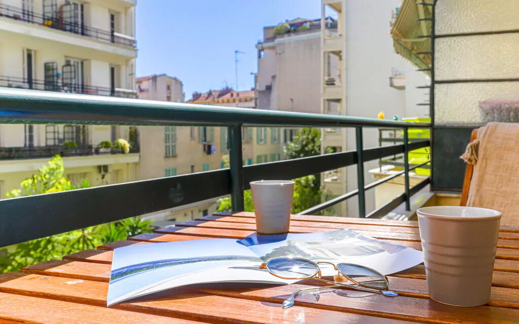 Le bien s'inscrit dans un ensemble résidentiel bien entretenu. La plage de galets « Neptune plage » se trouve à 500 m. Le quartier environnant offre un cadre agréable et accessible à pied, avec des rues bordées d'arbres et l'atmosphère animée du centre de Nice.