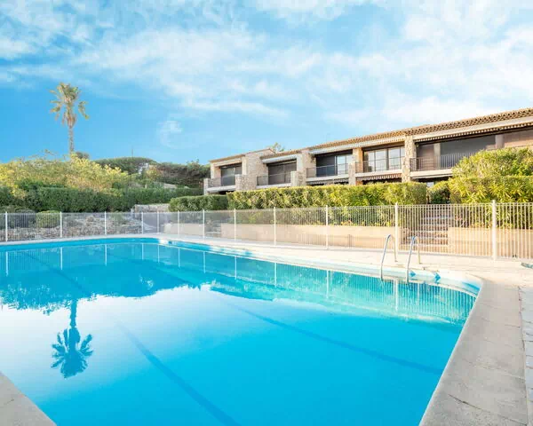 Située au sein de la résidence « Les Maures de l'Esterel » à Fréjus, cette maison de vacances bénéficie d'une position exceptionnelle à seulement 50 mètres de la mer. La résidence dispose d'un accès à une piscine partagée de saison, disponible du 1er juin au 30 septembre. Les espaces extérieurs et la cour environnante contribuent à l'atmosphère détendue et accueillante de cette résidence côtière.