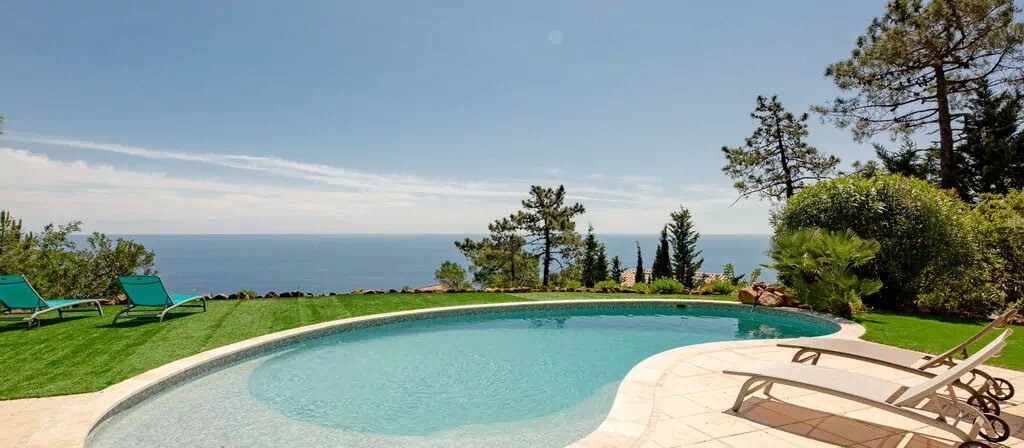 La piscina a forma di rene misura 13 x 4 metri ed è disponibile tutto l'anno, dal 1° gennaio al 31 dicembre. È dotata di un sofisticato sistema di depurazione a elettrolisi salina e di un sistema di allarme dedicato per la sicurezza. Un'area doccia all'aperto si trova nelle vicinanze della piscina. Il terreno di 1.500 m² in stato naturale, completamente recintato, offre ampi spazi per rilassarsi e godere dell'aria aperta in completa privacy. Il pendio del terreno crea un paesaggio caratteristico e pittoresco.