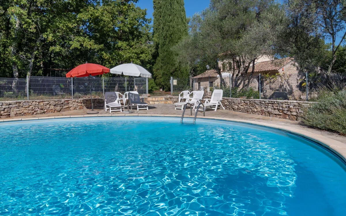 La piscina rotonda misura 9 m di diametro con profondità da 150 a 180 cm ed è disponibile tutto l'anno, dal 1° gennaio al 31 dicembre. Una doccia esterna si trova nelle vicinanze della piscina. Una terrazza consente di cenare all'aperto e di godere della vista sulla campagna provenzale. I 13.000 m² di terreno, mantenuti allo stato naturale e ricchi di aree a giardino selvatico e alberi maturi, offrono ampio spazio per passeggiate e momenti di tranquillità all'interno della proprietà privata.
